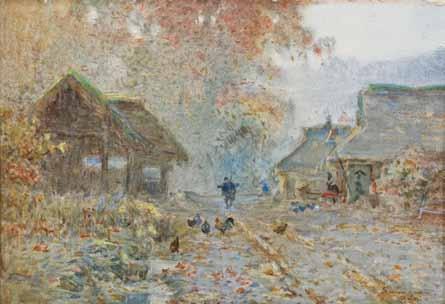 263 Hachiro Nakagawa (Japanese, 1877-1922) Autumn Village with Figure watercolor signed H. Nakagawa (lower right) 15 1/4 x 22 inches $800-1,200