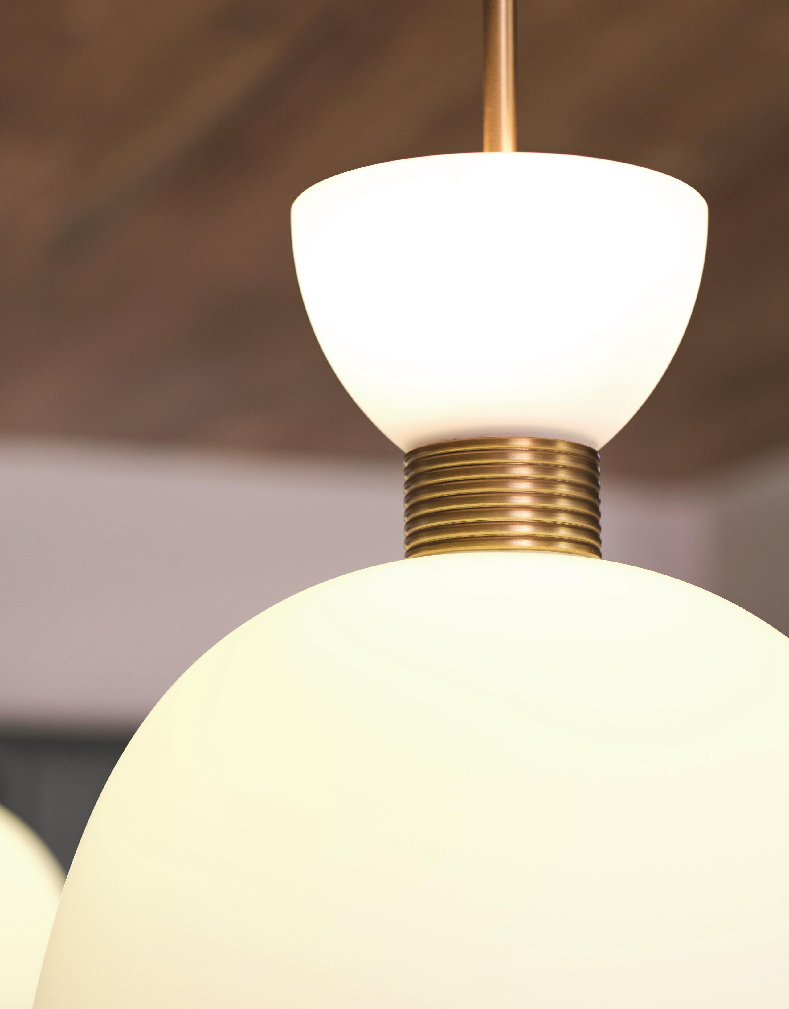 Combining vintage charm with practical design, Helene’s graceful, ribbed glass globes cast beautifully refracted light. Delicate detailing and unique knobs securing each shade are complemented by a rich Lacquered Brass finish to perfectly accentuate your space.