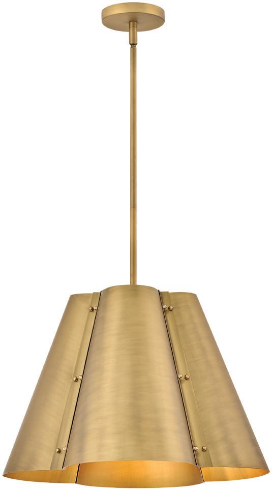 Strong in style and design, Bowman’s makes a transitional statement with a tapered quatrefoil shade accented by decorative knobs along symmetrical vertical supports. Heritage Brass or Slate Bronze finishes complement any living or dining décor with polished metallic tones.