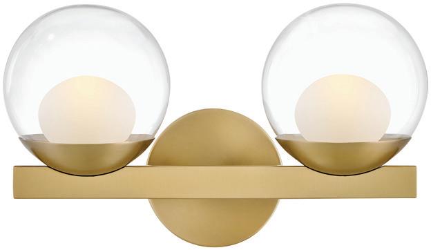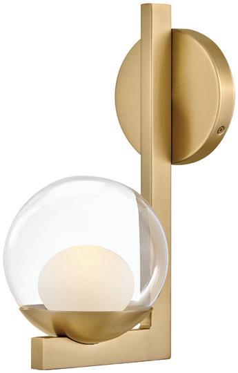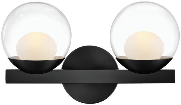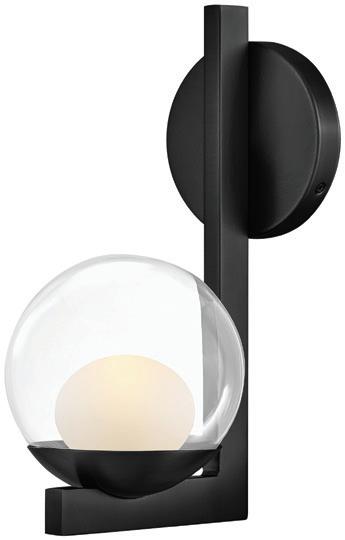 Sophisticated with an ultramodern twist, Sunni’s sleek design showcases a distinctive glass globe that artfully layers a Clear glass outside with an Etched White interior. A minimal backplate and frame feature a bold Black or luxurious Lacquered Brass finish to easily complement your space.