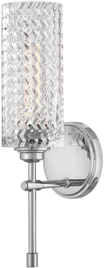 Elegant with a modern edge, Elle’s graceful design features rich chevron-cut glass that beautifully refracts light and creates a dramatic focal point within your space. The gleaming metal finish adds a hint of glam and a touch of radiance to any décor.
