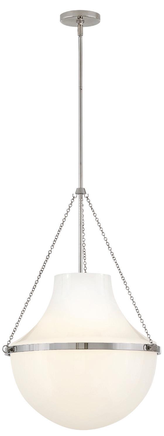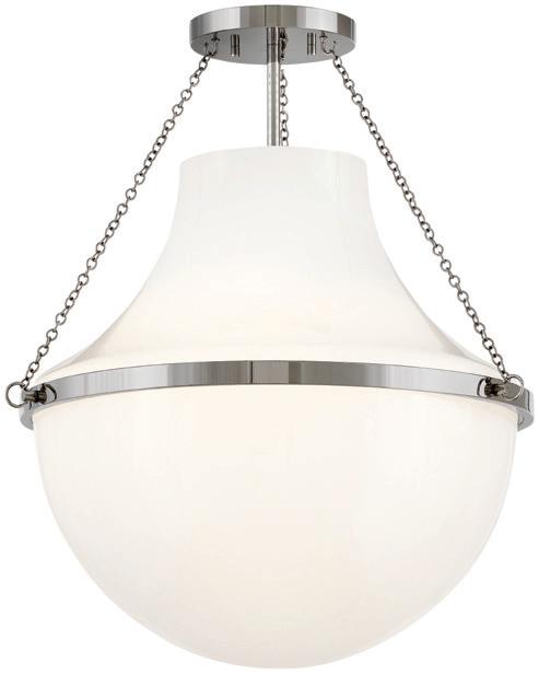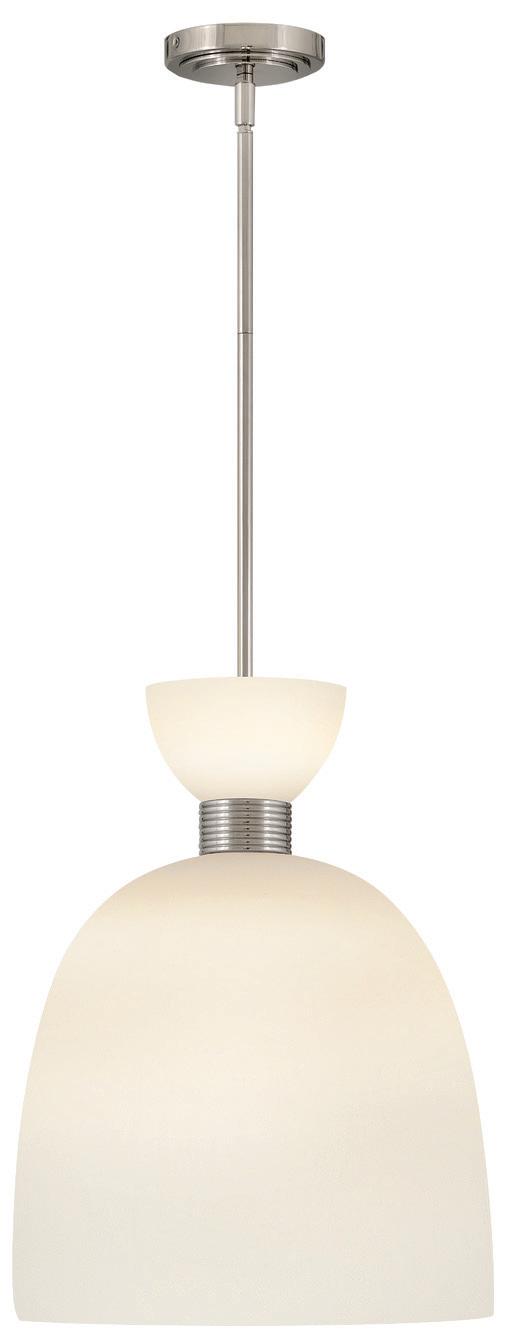 Graceful curves and delicate details define Tallulah. The smooth Etched Opal glass adds a touch of softness to balance ribbed metal details. Hardware featuring our Polished Nickel finish creates a nuanced retro look that makes Tallulah the perfect addition to any décor.