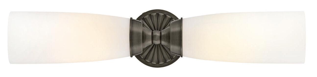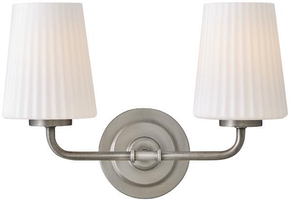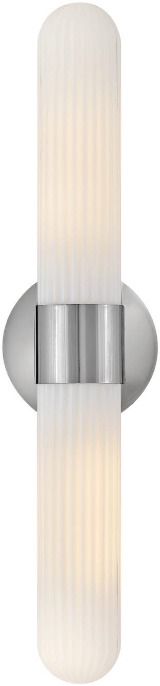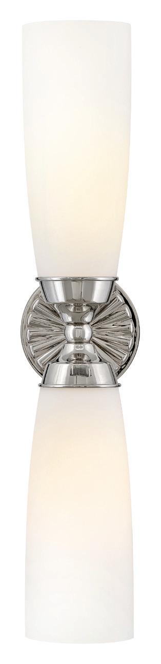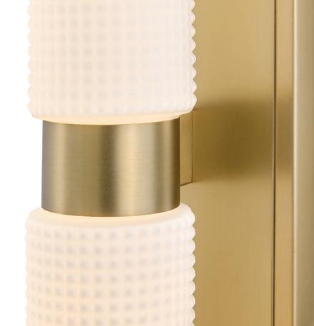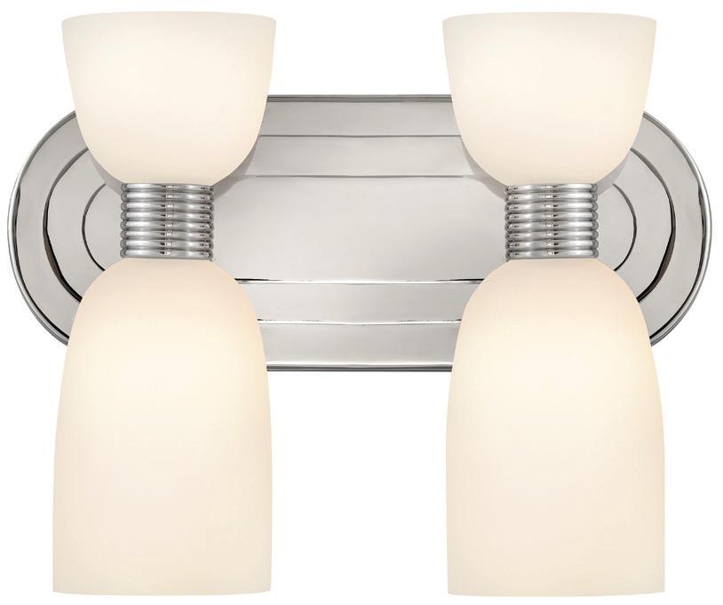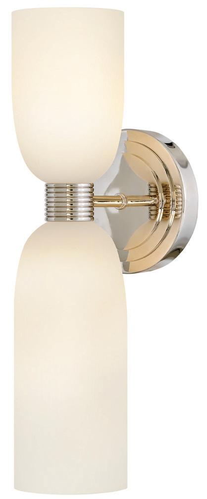 Blending transitional modern style with plenty of functional illumination, Nina is crafted to add a timeless accent to your bath or living space. Rounded Cased Opal glass shades with ribbed detailing glow beautifully, casting warm, even light throughout the surrounding room. A metal backplate and flared arm are finished in Black, Chrome, or Lacquered Brass to complement any décor effortlessly.