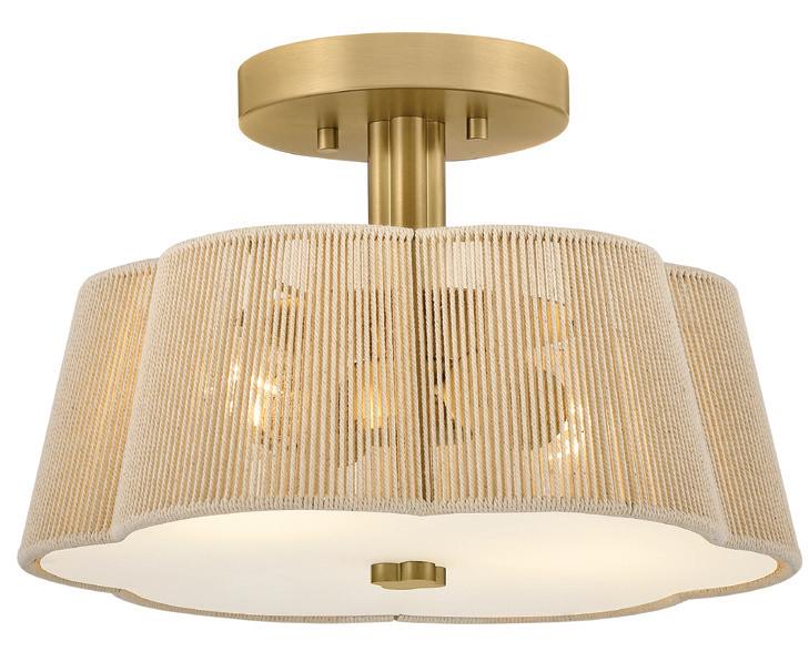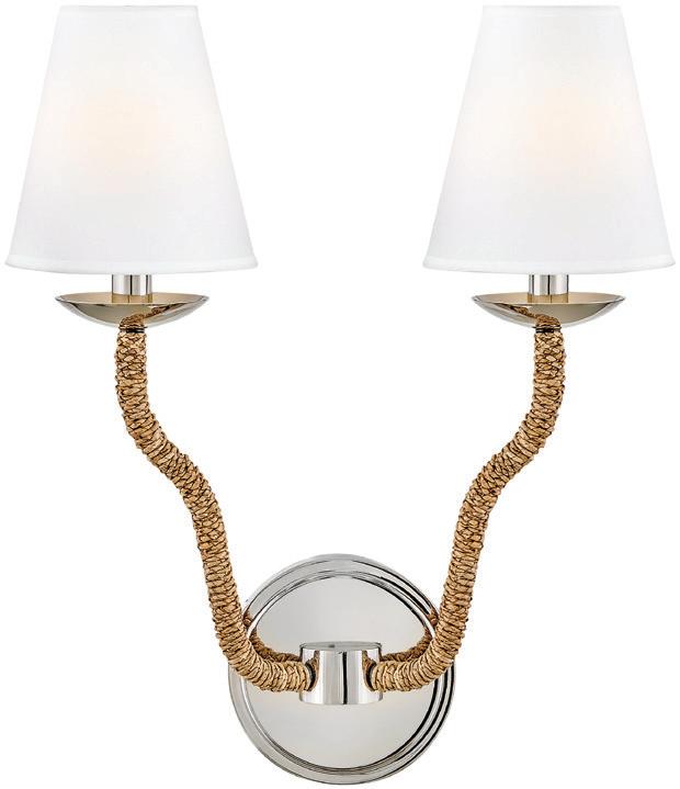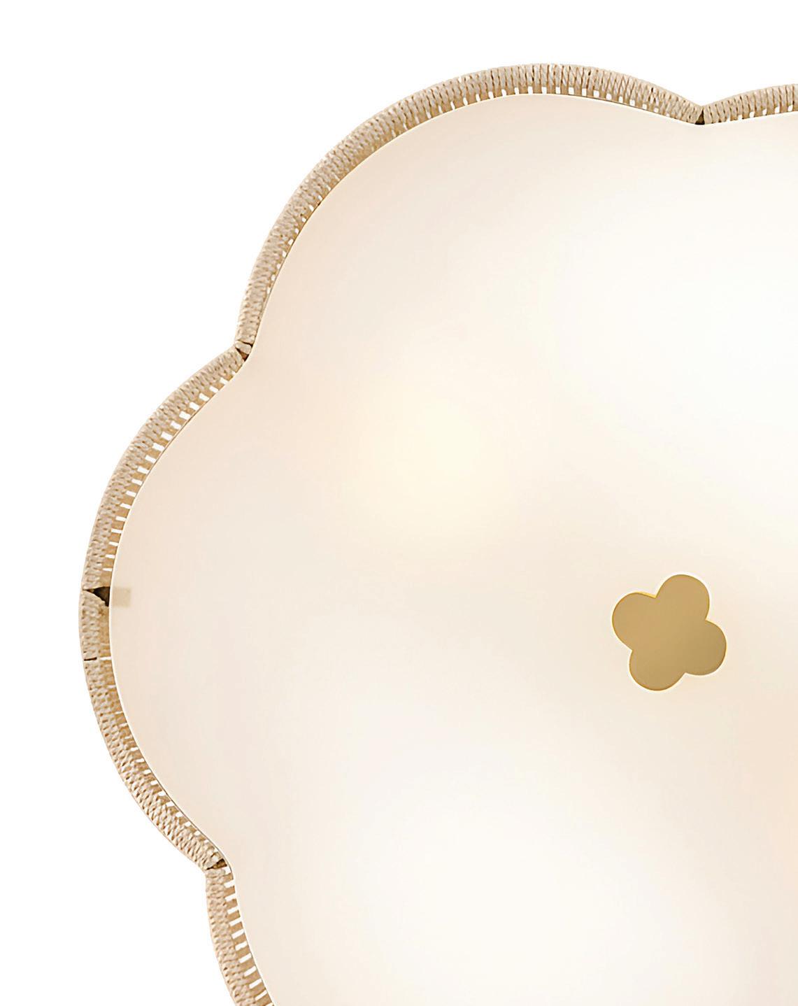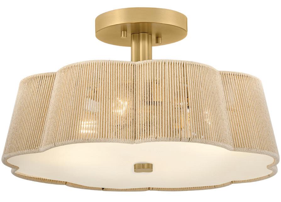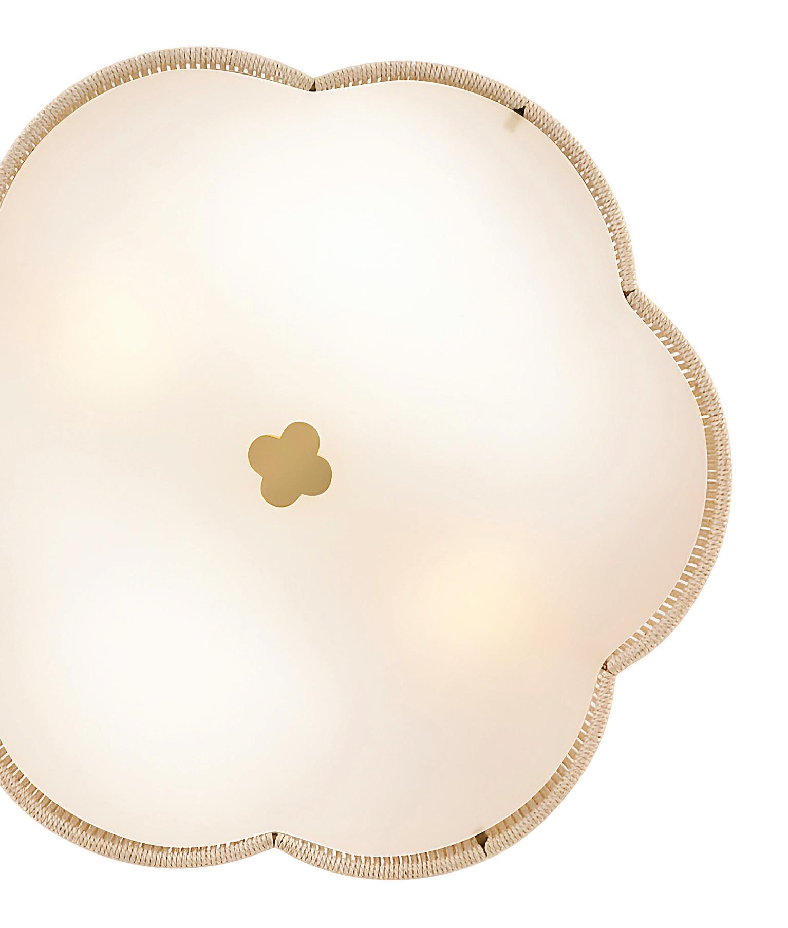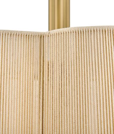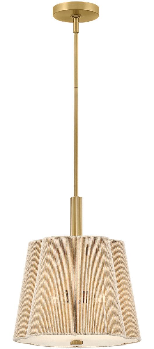 A scalloped shade hand-wrapped in natural fiber string imparts an element of sheer softness.