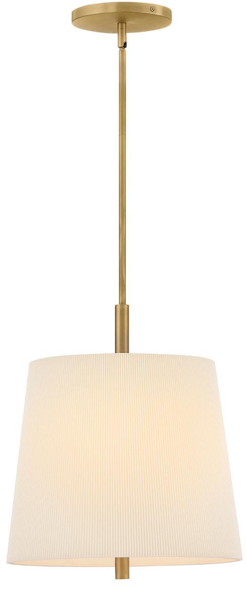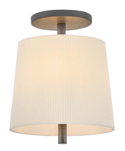 A structured design with a touch of Americana, Clive’s tailored shade features a micro-pleated texture that adds a refined feel to the slightly tapered silhouette. A slim stem grounds the off-white fabric with a contrasting Heritage Brass or Slate Bronze finish.