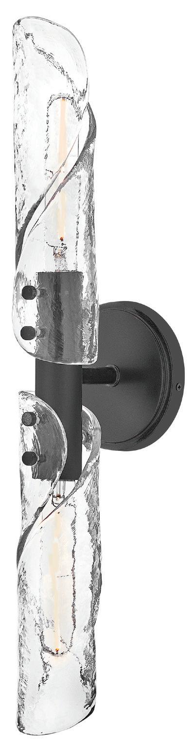 Evoking the movement of flowing water, Capri’s linear, clear glass shades are pressed to create a subtle crystalline texture, then twisted and shaped by hand. Metal backplates and rounded knobs finished in Black or Distressed Brass provide balance that anchors the organic form, resulting in a look that feels both refreshing and refined.