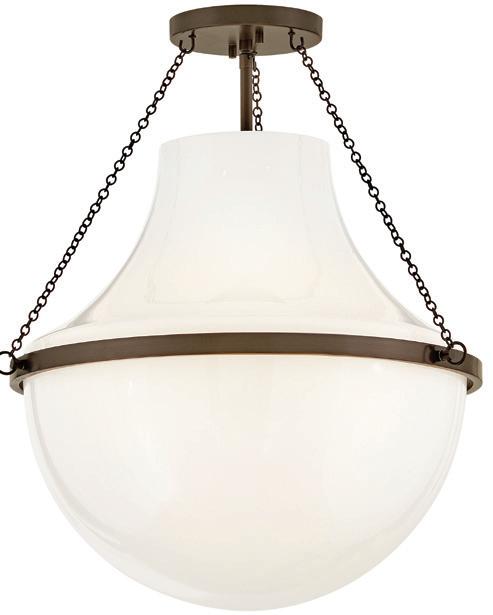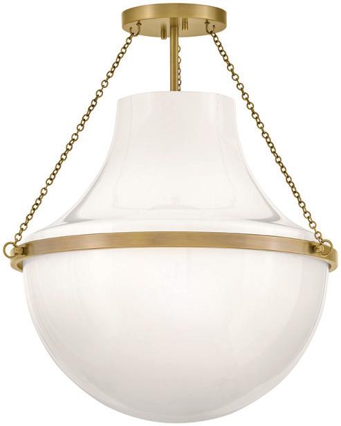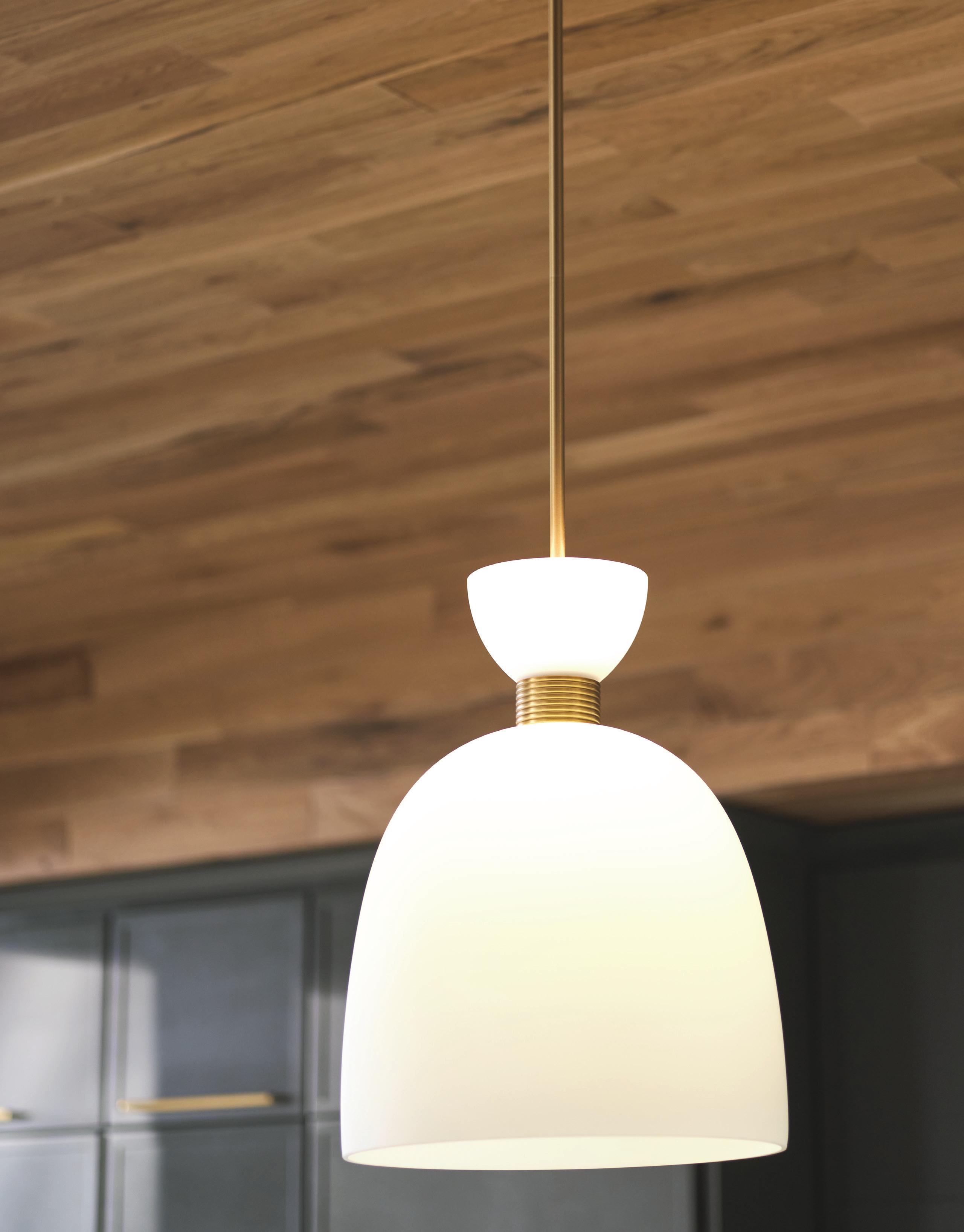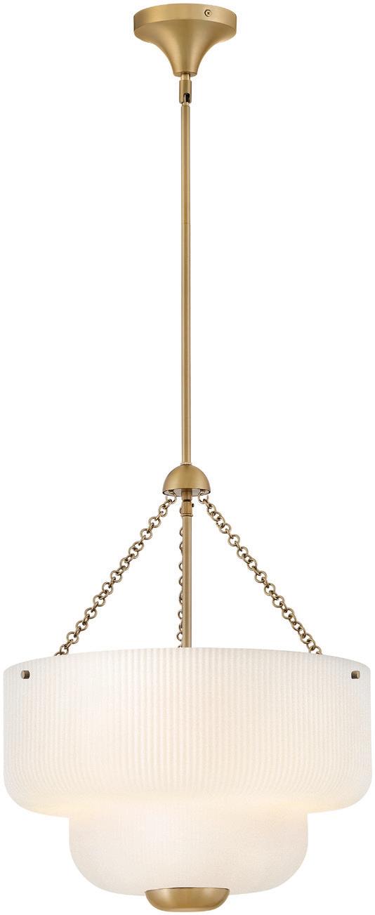 A clean design with traditional styling, Adella’s fine-ribbed glass shade creates a soft silhouette accented by fine details, delicate chains, and a sleek flared canopy. A Lacquered Brass finish complements Etched Opal or Smoke glass, accenting your living space with a distinguished aesthetic.