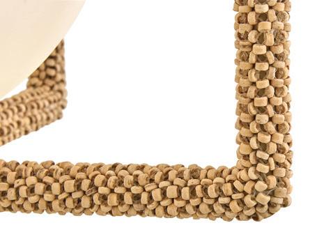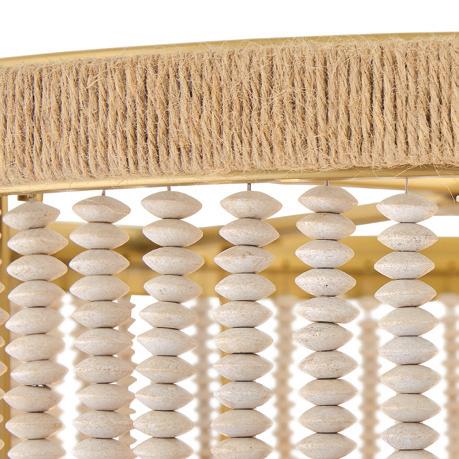Draped strands of coco beads create a curtain of natural texture and bohemian style.