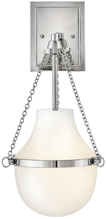 Radiating enchanting refractions, Lottie’s Etched Opal Holophane glass diffuses warm light from integrated LED illumination, filling your space with an inviting glow. A polished stepped backplate adds just the right touch of detail and provides convenient placement options with adjustable mounting hardware.