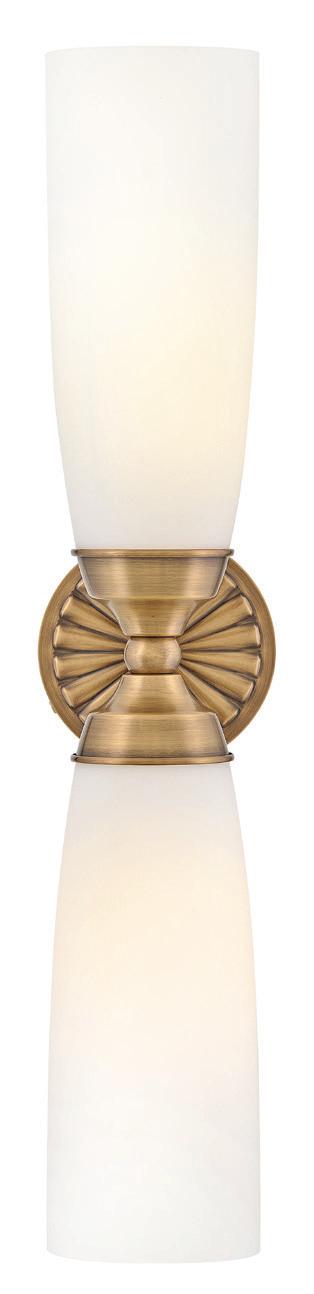Blending the glamour of art deco design with midcentury style, Alexis showcases refined details elegantly contrasted by elongated, Etched Opal glass shades. A medallion backplate features a sunburst motif enhanced by hand-polished finishes and burnished detailing to create a rich, dimensional look that elevates any space.