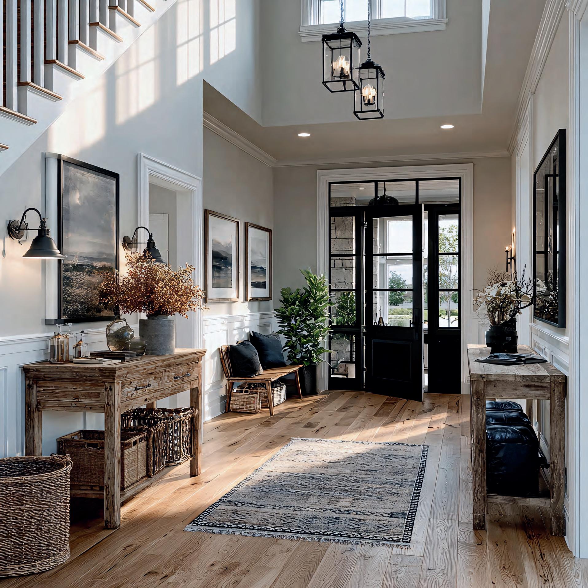 Modern homes blend historical inspiration with contemporary needs. Open interiors are balanced with defined zones for work, wellness, and family time. Mudrooms, home offices, and multi-generational spaces are now standard features. Sustainability and smart technology guide today’s designs, focusing on efficiency and adaptability rather than ornament alone. ■