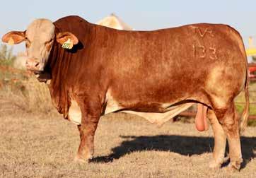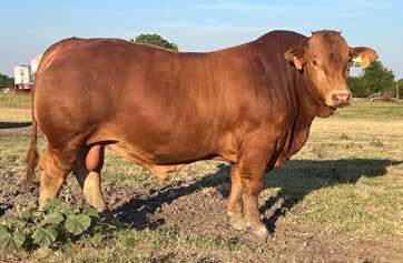 BROADWAY SIMON CREEK 736 BUSTER 008 LASATER 6271 SIMON CREEK 0122 SIMON CREEK 809 CED BW WW YW MILK MCE MWWT SC STAY AFC RFI REA FAT 4.9 -1 19.3 35 6.9 4.1 16.6 0.6 5.7 -1.1 -0.021 20% 15% 70% 75% 90% 10% 85% 30% 1% 30% 35% 0.42 30% -0.012 95% LOT 5 GENESI 122 • C1152752 GENESIS BEEFMASTERS | RED | 3/8/21 | 122 | HORNS | 1275# ADG 3.78 ADG% 120.17 FINAL WDA REA 12.66 RIBFAT 0.24 IMF 4.01 WW 618 YW 1070 105.19 MB $T $M 0.2 10% 63.37 65% 14.09 55% $FE 13.21 55% BW L BAR 5502 SIMON CREEK 302 SIMON CREEK 1023 LASATER 8242 BUSTER 295 BUSTER 945 CED BW WW YW MILK MCE MWWT SC STAY AFC RFI REA FAT 0 2.3 33.5 54.6 5.7 3.5 22.5 0.4 1 -1.3 -0.116 95% 95% 25% 25% 95% 25% 45% 50% 30% 20% 15% 0.86 3% -0.017 90% LOT 6 1TVR TRUE VINE 133 • C1147960 TRUE VINE BEEFMASTERS | RED WHITE FACE | 3/20/21 | 133 | HORNS | 1280# ADG 3.4 ADG% 107.95 FINAL WDA REA 15.77 RIBFAT 0.25 IMF 3.4 WW 630 YW 1098 108.58 MB $T $M 0.11 20% 96.59 20% 15.23 50% $FE 19.78 15% BW 85 SIMON CREEK 634 SIMON CREEK 806 SIMON CREEK 645 SIMON CREEK 540 SIMON CREEK 960 SIMON CREEK 660 CED BW WW YW MILK MCE MWWT SC STAY AFC RFI REA FAT 2.6 0.6 30.8 62.5 11.3 3.3 26.7 0.7 1.9 -0.7 -0.083 75% 60% 30% 15% 20% 40% 25% 25% 20% 50% 20% 0.39 30% -0.015 95% LOT 7 S C B SIMON CREEK 114 • C1144640 SIMON CREEK BEEFMASTERS | RED | 4/6/21 | 114 | DEHORNED | 1195# ADG 3.46 ADG% 109.98 FINAL WDA REA 14.24 RIBFAT 0.18 IMF 3.24 WW 664 YW 1078 105.6 MB $T $M 0.14 20% 110.09 10% 14.6 55% $FE 27.61 2% BW 76 RED RIVER BEEFMASTER BULL SALE The highest-ranking bull in the sale when it comes to visual appraisal, this bull has the phenotype that can work on any cow in the breed. This bull has the bone, muscle, depth, length and disposition. This guy will certainly produce top selling calves wherever you consign them. Arguably, this is the best white face bull tocome through our program. He was a fan favorite on grading day and is in the top 5 when it come to disposition. This is another seedstock bull with tremendous muscle that can get a program going in the right direction. Flat out tank!! Wide top, with a huge butt and tons of performance. His mother, a 12-year-old low maintenance cow with a tremendous udder that consistently raises some of the best calves in the pasture. LOT 6 LOT 7
