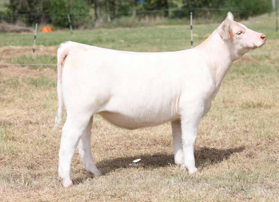 genetics and a promise of service after the sale, this ones going to be a lot of fun!! Bottomline folks, if you want to hang banners and will pay for herself after the ring gate closes this is your girl. Seller retains one flush retains one flush resulting in a minimum of 8 embryos at the buyers convenience and sellers expense. SELECT HEIFER SALE • OCTOBER 9, 2022 • 1 PM • BRYAN, TX • CCI.LIVE 30 CLF KSC SMOKESHOW 2322 REG #: PENDING • DOB: APR-22 BREED: CHAROLAIS SIRE: M&M OUTSIDER 4003 DAM: T/R MS LEDGER E4 SELLER: DAN KELLEY DAM OF LOT 30: T/R MS LEDGER E4