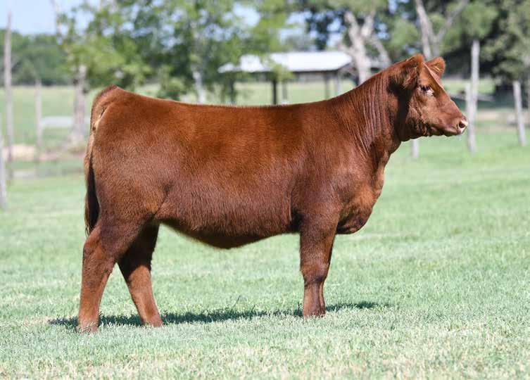 This girl is big, soft legged and glides around the pen! Her natural muscle and mass are something we strive to produce in our program and she knocked that out of the park. She is one that is ready to go to the ring today and make a statement! By Motivation and out of our consistently stellar donor, Bess 702E, this one is made to be a show cow now and a front pasture kind of donor later! SELECT HEIFER SALE • OCTOBER 9, 2022 • 1 PM • BRYAN, TX • CCI.LIVE DAM OF LOT 6: RED BCR BESS 702E 6 RED BCR BESS 318K REG #: 4631761 • DOB: FEBRUARY 2022 BREED: RED ANGUS SIRE: RED WILBAR MOTIVATION 686H DAM: RED BCR BESS 702E SELLER: BCR VENTURES