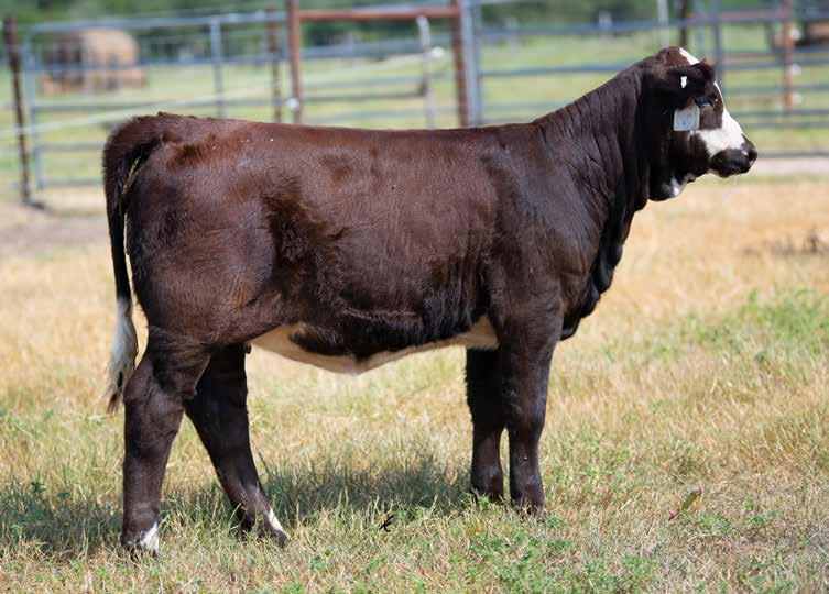 Sleek, sound and stout who could ask for anything more! Don’t overlook the star headed heifer in our offering because she is as solid as they come with added grace in her movement and pizzas and poise in her look. 37 ELLIS MILAN REG #: C1159096 • DOB: JUN-22 BREED: BEEFMASTER SIRE: ELLIS’ HOLLYWOOD DAM: ELLIS MIRANDA SELLER: ELLIS BEEFMASTER