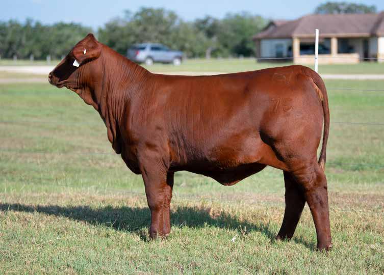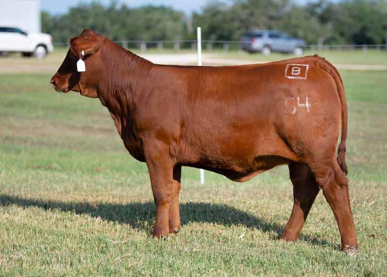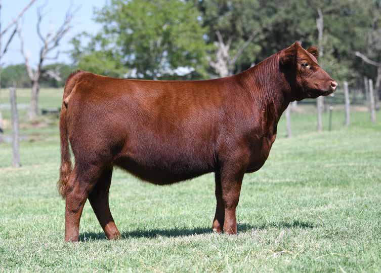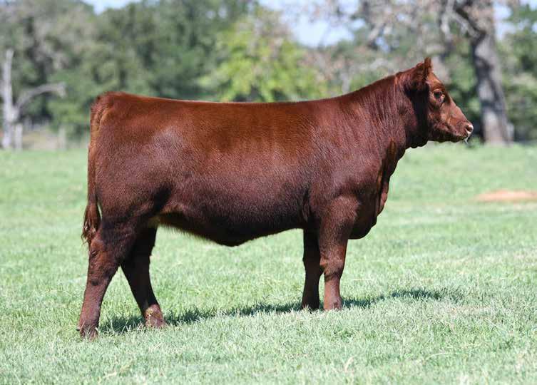 We can’t say enough about consistency in pedigree and choosing females that not only show, but also more im portantly go on to make productive brood cows. This stout made future donor prospect is built with a little truer muscle and mass, while still maintaining worlds of body, extension, and extra eye appeal. This is a truly a mon ey-making female. Halter broke and ready to hit the show road. SELECT HEIFER SALE • OCTOBER 9, 2022 • 1 PM • BRYAN, TX • CCI.LIVE GRAND DAM OF LOT 17: 2015 JUNIOR NATIONAL CHAMPION SR 60/3 17 BSR NEVEDA REG #: 20215721 • DOB: NOV-21 BREED: SANTA GERTRUDIS SIRE: MR FLEX DAM: D BAR J 889 SELLER: B SQUARE