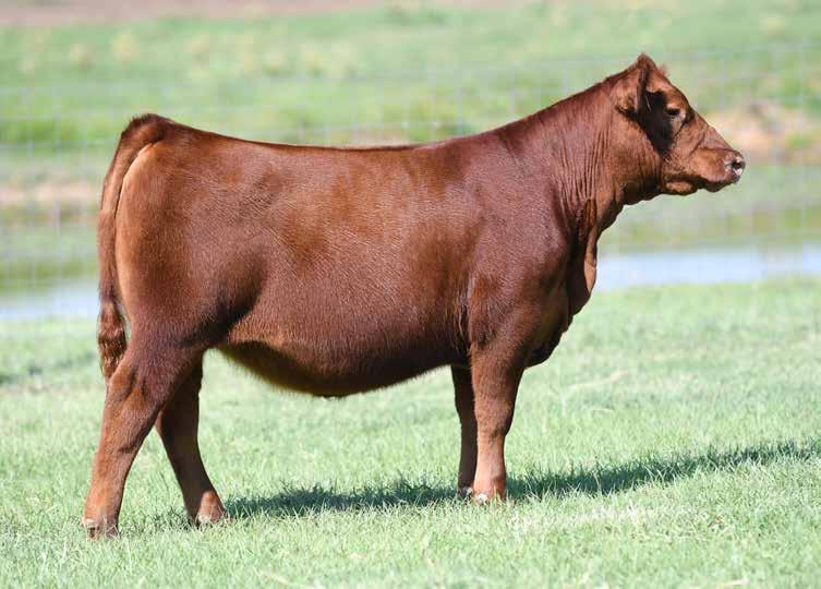 Don’t let her killer phenotype deceive you, this girl is puppy dog tame! She is the total package from head to tail and looks as good on the move as she does standing still! She is out of our great donor 36E, the only full sister to the dam of the outstanding bull Red NCJ Coming in Hot that sold to Six Mile Red Angus in Canada a few years ago and commands a price of $500+ per unit of semen. We think 316K has all that it takes to be the star donor female that her mom and aunt are after she is done being a show cow! SELECT HEIFER SALE • OCTOBER 9, 2022 • 1 PM • BRYAN, TX • CCI.LIVE DAM OF LOT 13: RED NCJ MINERVA 36E 13 RED BCR MINERVA 316K REG #: 4631757 • DOB: APRIL 2022 BREED: RED ANGUS SIRE: RED WILBAR MOTIVATION 686H DAM: RED NCJ MINERVA 36E SELLER: BCR VENTURES