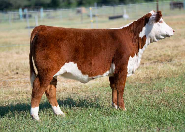 SELECT HEIFER SALE • OCTOBER 9, 2022 • 1 PM • BRYAN, TX • CCI.LIVE The kind that will make a true cow, as the “On Points” are some of the most sought after in the polled breed! Reserving 2 successful flushed out of each lot at buyers convenience and sellers expense. 33 BRIGHT MISS SHELBY 2220 ET REG #: PENDING • DOB: 4/3/22 BREED: POLLED HEREFORD SIRE: CRR 109 ON POINT 559 ET DAM: TCC MISS SHELBY 82 ET SELLER: LE GRAND - JAMES BRIGHT MATERNAL SISTER TO LOT 33: BRIGHT MISS LILLIAN 2126