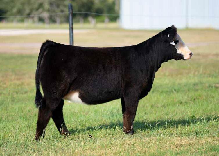 SELECT HEIFER SALE • OCTOBER 9, 2022 • 1 PM • BRYAN, TX • CCI.LIVE Cow power deluxe! Talk about a female that has all the bone, power, and body a person could want in a female and still maintains that show ring look. We lined up the famous Ginger 50A donor and she sure didn’t disap point. Show her, breed her purebred or even make those high dollar American show steers this one can do it all. Study her at the ground, that’s where she sets her self apart from the rest! 24 BLACK GINGER REG #: PENDING • DOB: FEB-22 BREED: PB SIMBRAH SIRE: HAGAN SKAGGS FEARLESS DAM: HAGAN GINGER 50A SELLER: HAGAN CATTLE COMPANY DAM OF LOT 24: HAGAN GINGER 50A