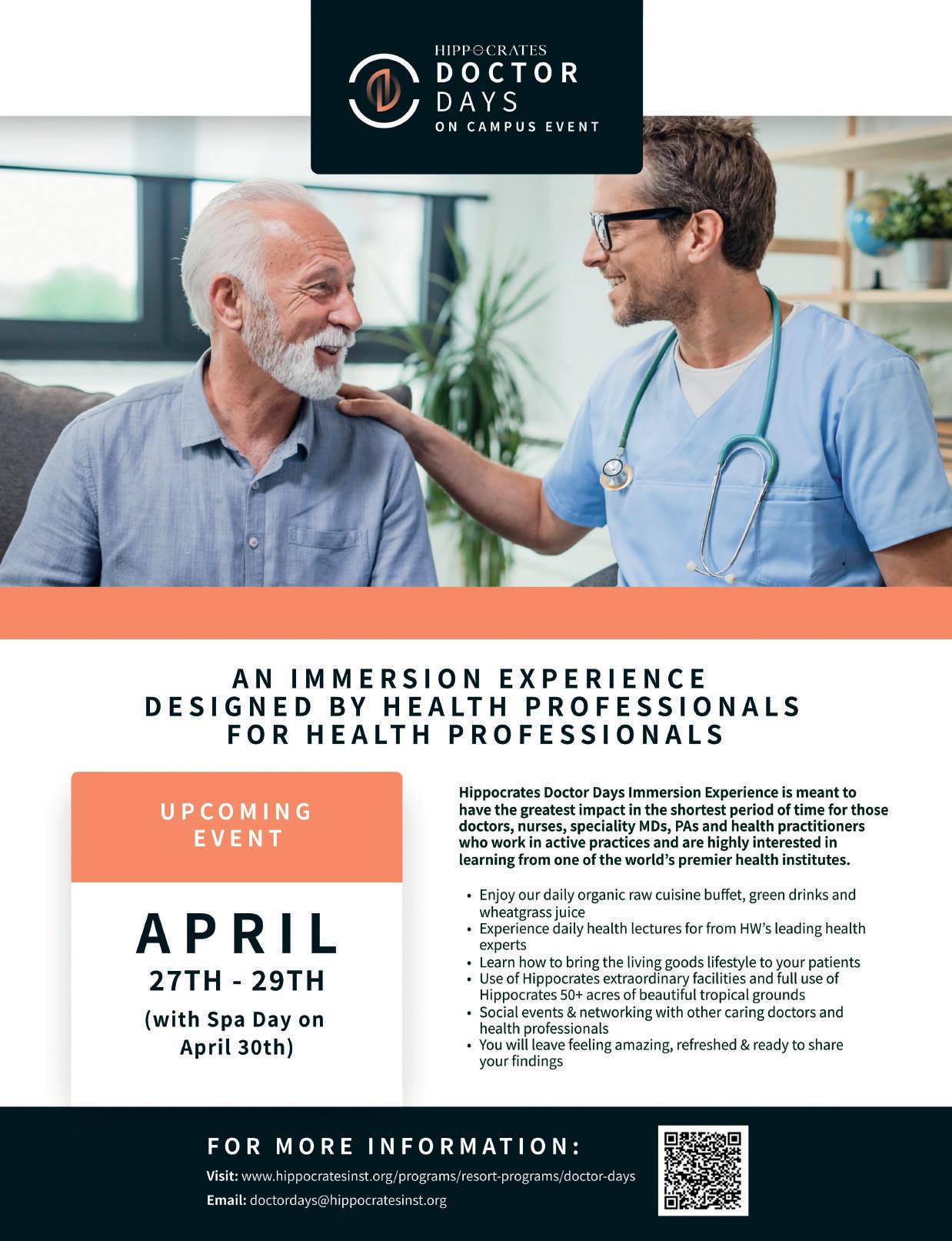 print and online readers each issue! For a rate card, email Susan HOW@hippocratesinst.org