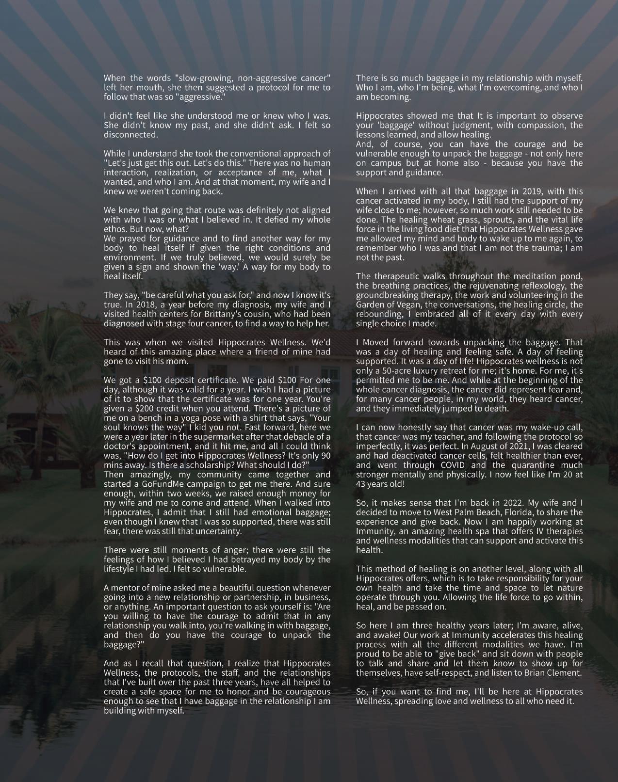 Hippocrates Wellness presents the life-changing journeys and experiences of our guests and alumni, in their own words. Thank you to all contributors.