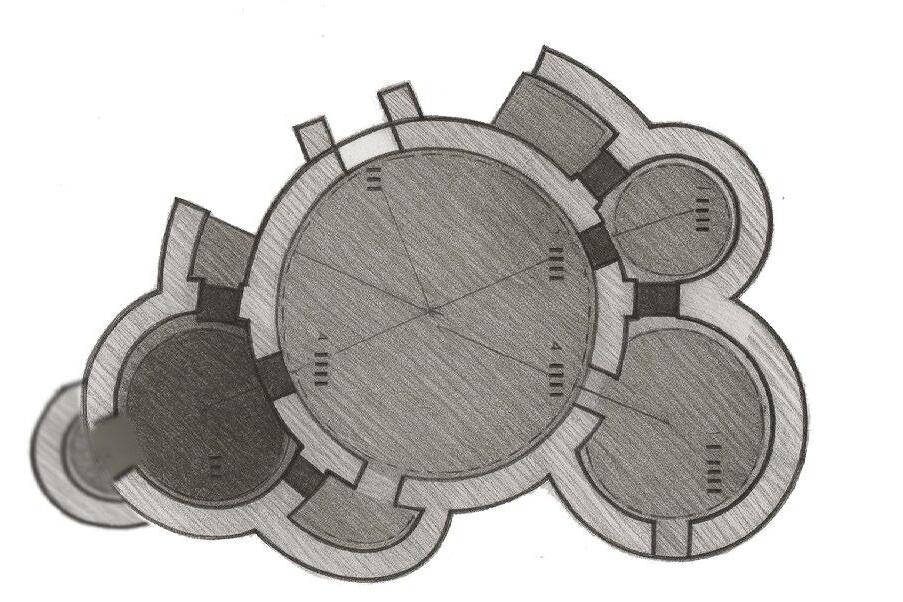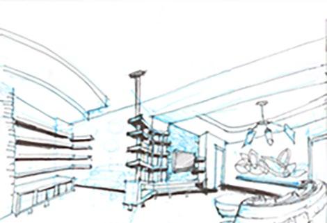 A sketch from the covered plaza in the middle and light catchers.