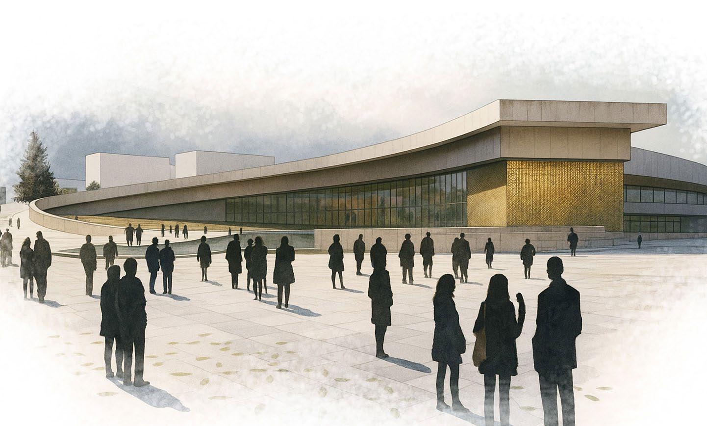 The program also includes hotel, housing, and retail components. Located just north of Civic Plaza, the site occupies a full city block currently used as surface parking. It sits across from the convention center and is within walking distance to transit hubs, restaurants, and other downtown amenities—positioning it as a key cultural and urban destination.