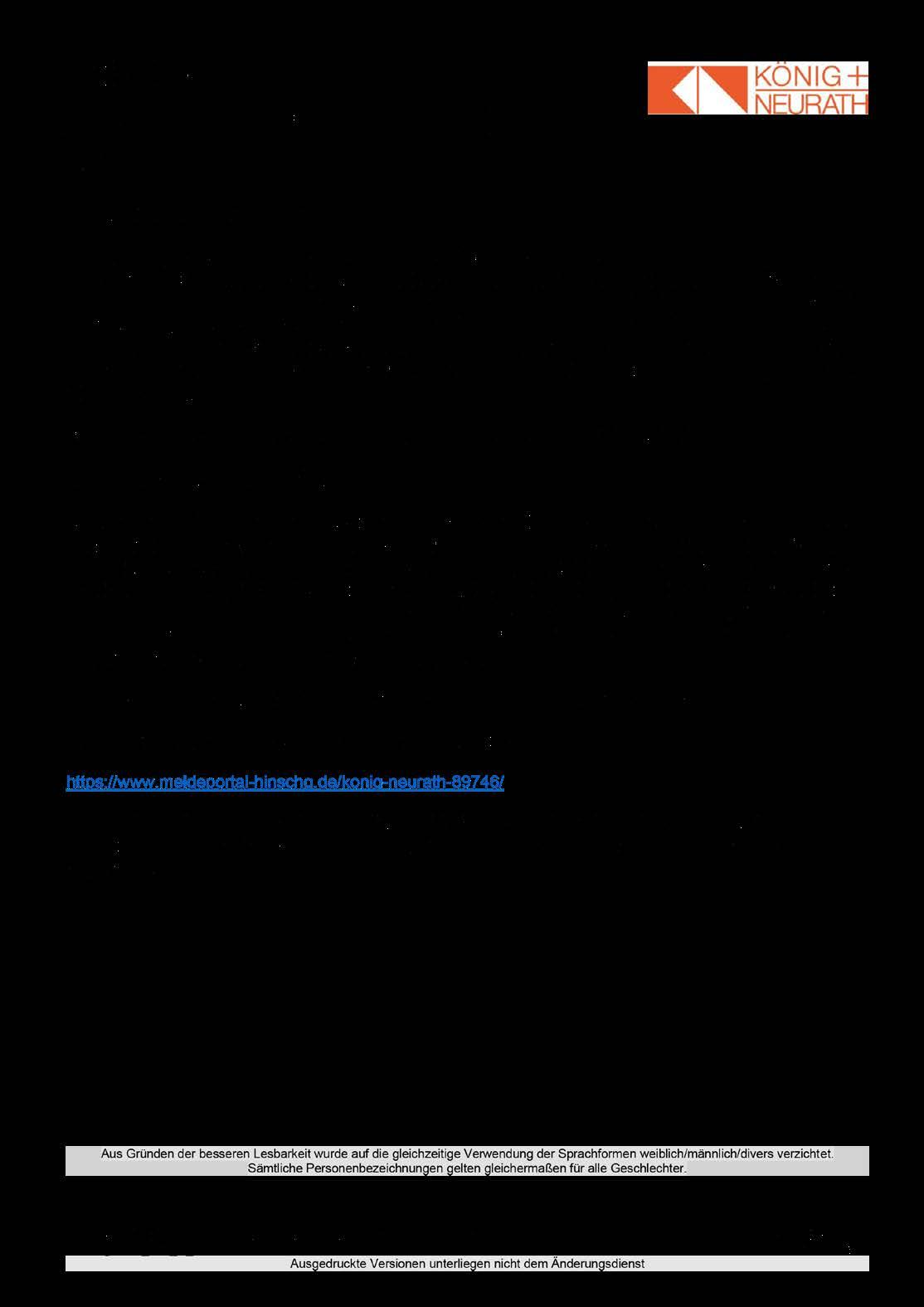 I am very proud that we have been able to record great successes over the past two years despite the difficult economic conditions and that König + Neurath is continuing to make progress. We are very much looking forward to the upcoming projects: for more efficiency, a real circular economy and, very importantly, value-based cooperation.