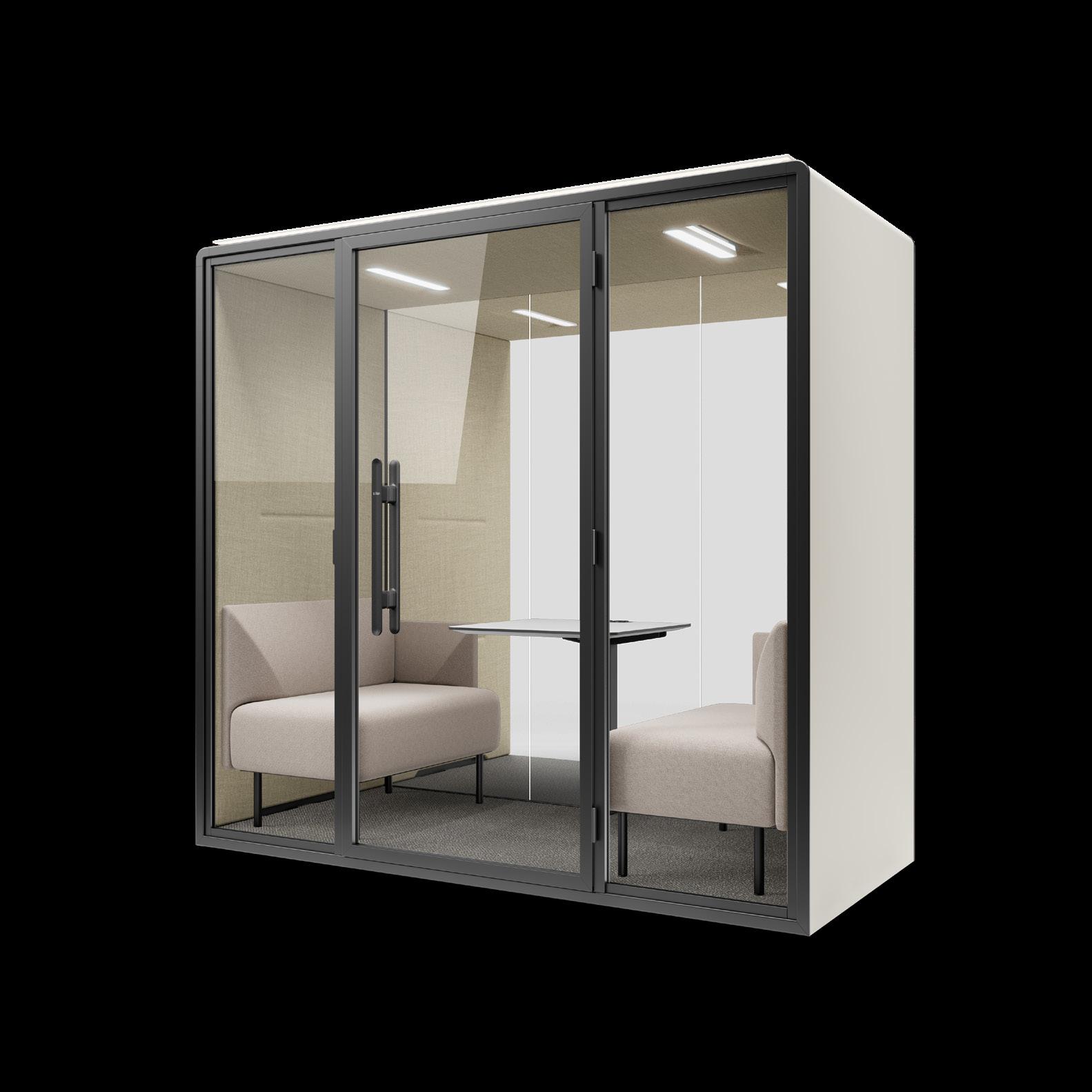 This stylish pod filters out the world, its noise and distractions. Comfortable for two (but fits four for shorter meetings), shared purpose turns into real focus here. Meet, create, and collaborate.