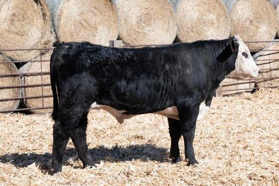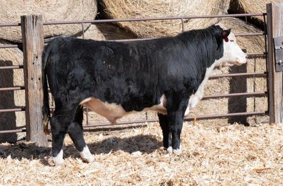 Outofahighlyproductive9yearoldcowwhoisalwaysbredearlywiththelargestcalves.Shewill addlookandstyletoanyherd.Asdeepandstoutassheisgentle.EyePigment:LE-20%,RE-10%. Top3%Doc.Top10%TM,CFAT.Confirmedbred,dueearlySeptember.PastureexposedtoJNHI/ Grit583K andICC0814Zander3814