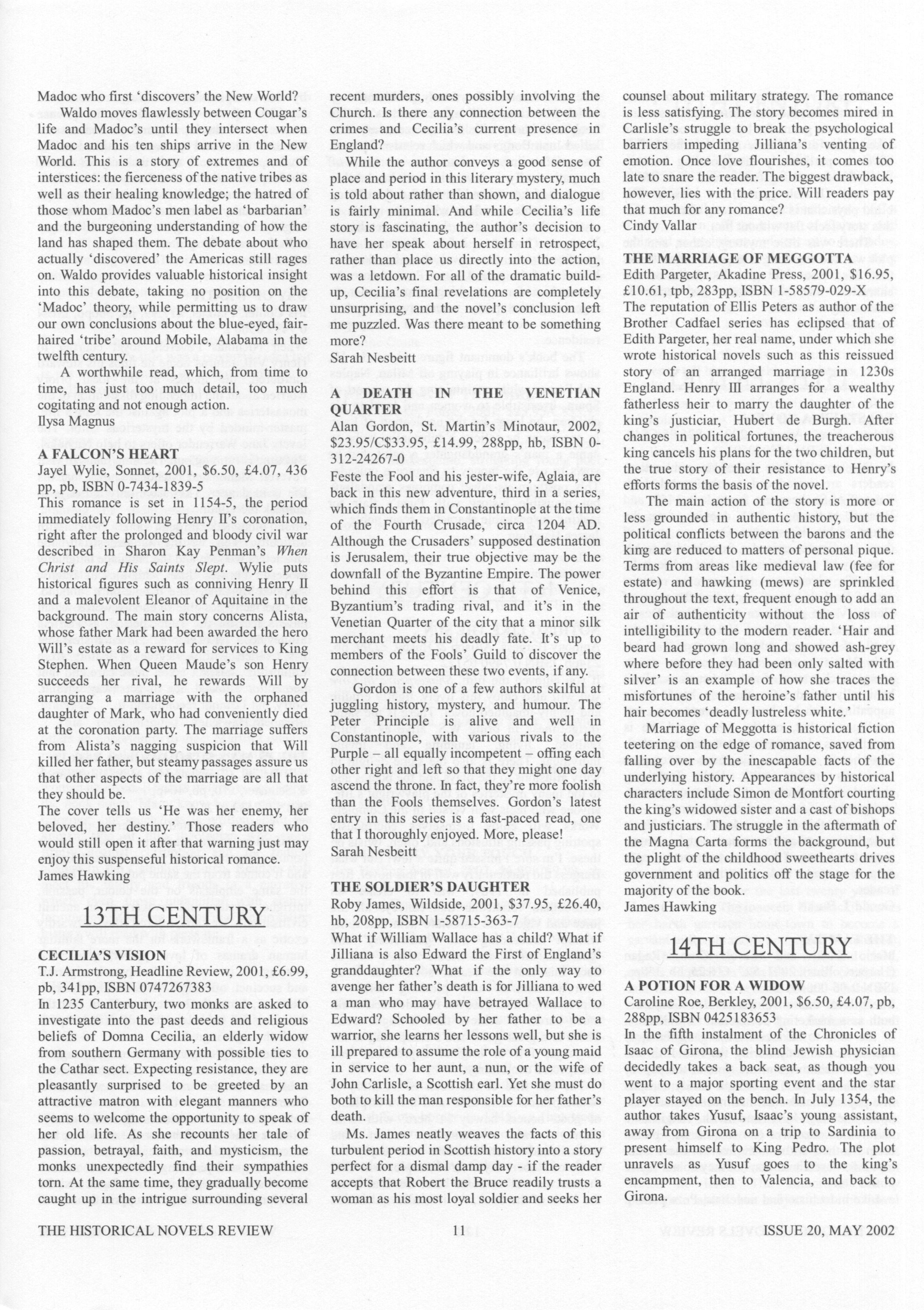 As an update on my article last year on audio books , the following information may be useful. Peter Johnson from Isis Publishing has kindly sent me information on the latest releases from Isis & Soundings. Even if you are not interested in buying these latest historical audios, you can request them from your local library (some libraries do charge a fee for specific requests). The editor has kindly allowed me space for this update and since this commodity is always at a premium, I have omitted listing the readers for each title. This information is , of course, available in the catalogues issued by Isis and Soun dings, available from the address below.