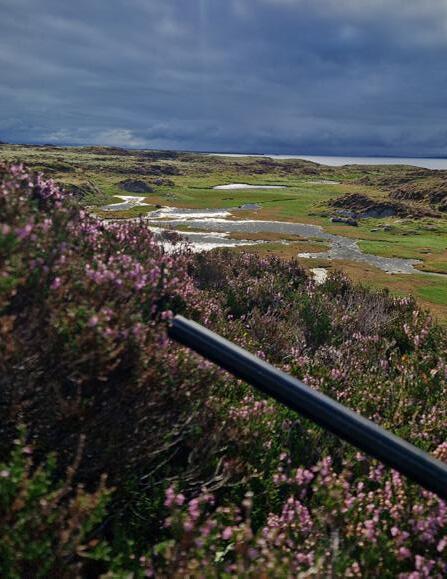 Rolig begynner vi å gå mot plassen vi skal sitte på post. Utsikten er fantastisk. Havmyran ligger der med sine hundervis av vann som glitrer i sola. Ute i havet skimter vi Frøya, Smøla og Fosenhalvøya gjennom en blå tåkedis.