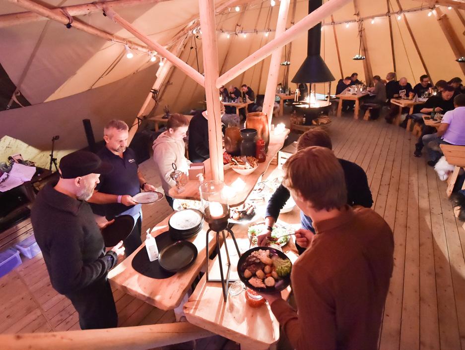 – I teltet kan vi også ta imot større grupper og bedrif ter på arrangement og fester. Det gir oss mye større mu ligheter i driften. Her har vi plass til 500 sittende spise gjester. Nå kan vi si at vi har garanti for oppholds på alle arrangementer.