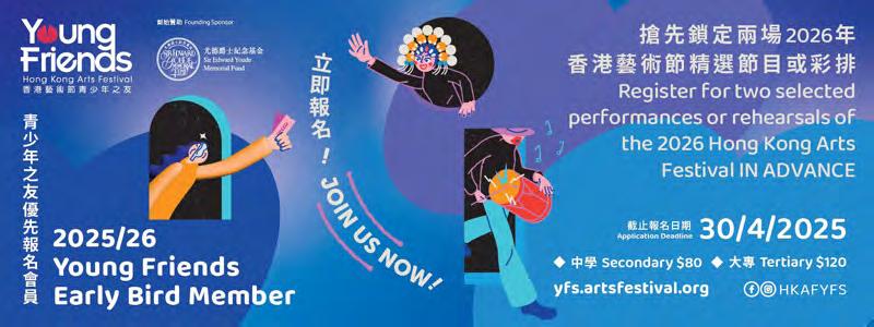 I am pleased to congratulate the Hong Kong Arts Festival on the organisation of its 2025 season—the 53rd edition of one of the world’s most celebrated international cultural events.