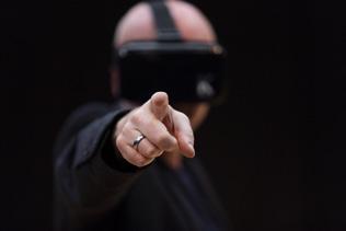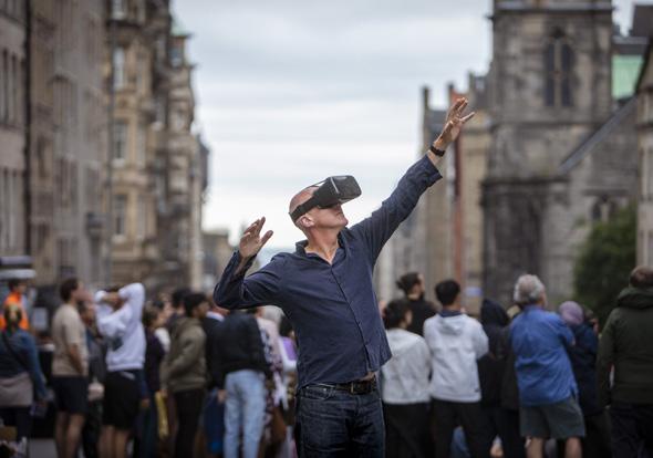 In fact, it’s completely absent; at one point he notes that his virtual reality headset isn’t showing anything at all. It’s a very Crouchian move: admitting, pointing out and revelling in the artificiality of theatre has been central to his oeuvre since the first play he wrote in 2003—My Arm