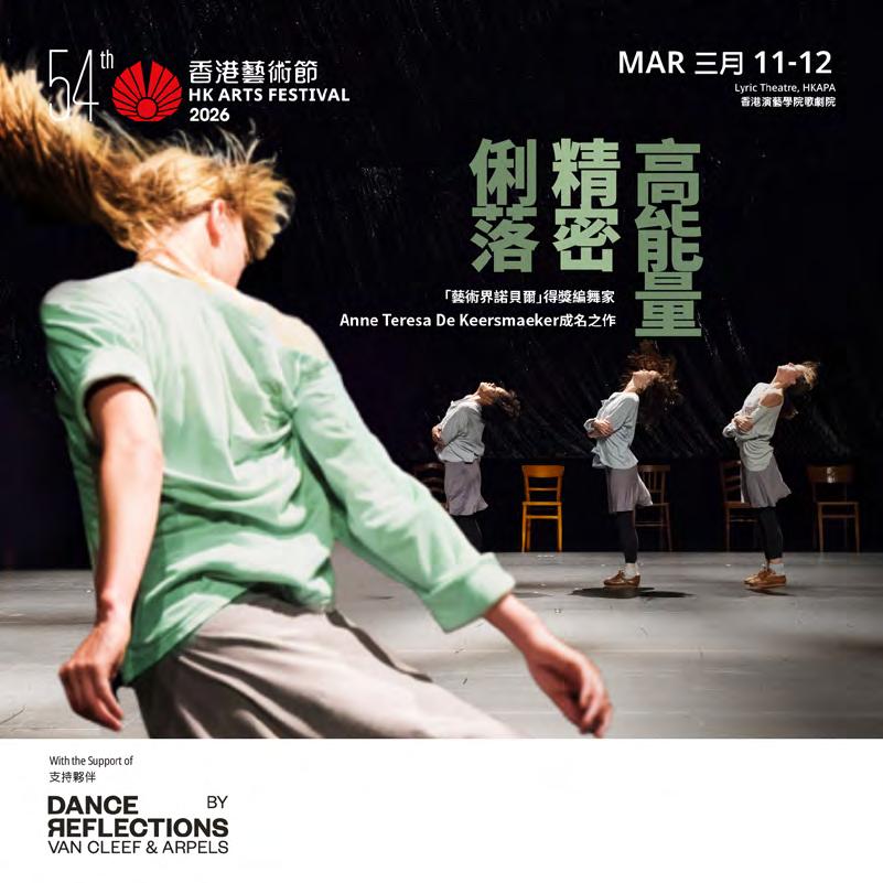 二零二六年香港藝術節隆重舉行,謹 此致賀。今年藝術節邁進第五十四屆, 約 180 場演出涵蓋音樂、戲曲、歌劇、 戲劇、舞蹈、藝術科技及其他表演藝 術創作,精彩多元,引人矚目。