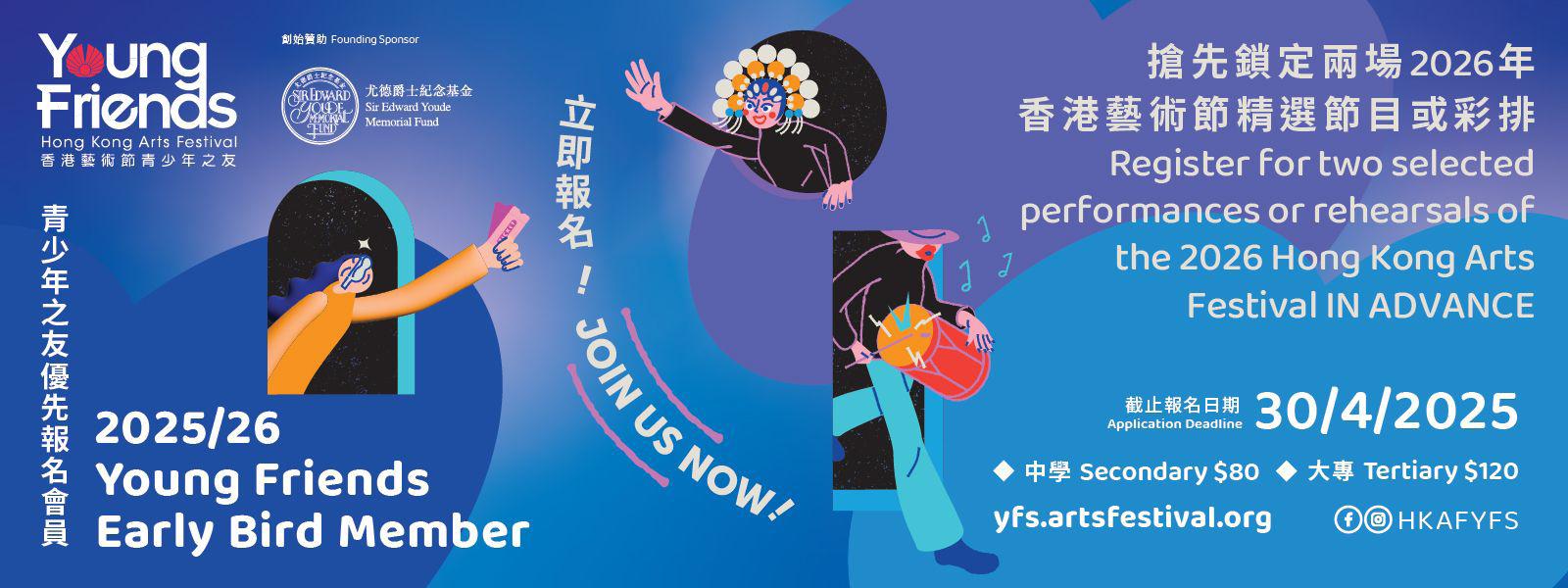 ※ Ticket holders are strongly advised to arrive punctually. The HKAF reserves the right to refuse the (a) admission of latecomers (whether at the beginning of the performance or after the intermission) and (b) re-admission of audience members who leave the auditorium during the performance.