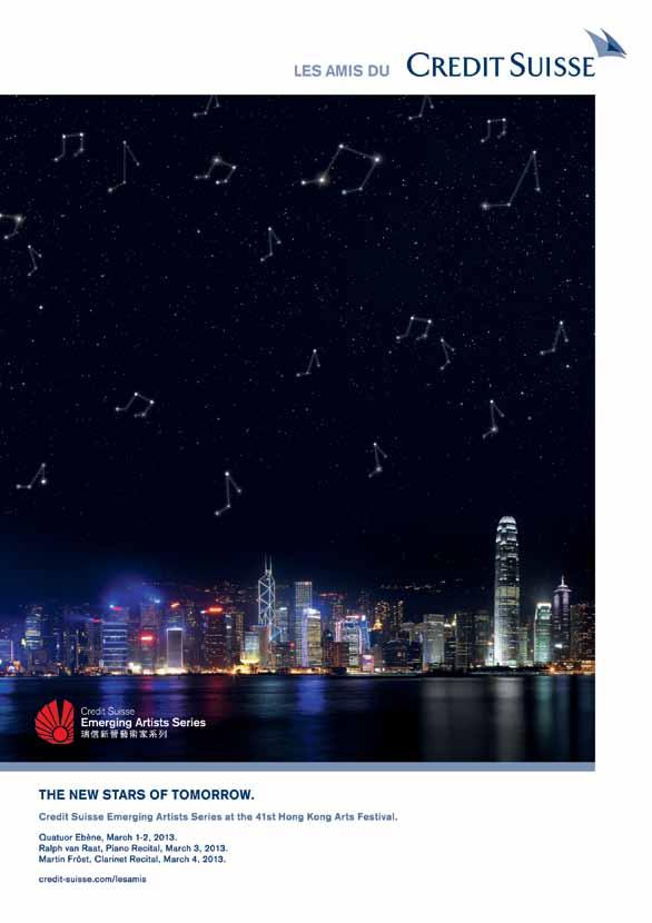 I am delighted to join the Festival team in welcoming you to the 41st Hong Kong Arts Festival, and to acknowledge the many contributions that have made the Festival the premier event in Hong Kong’s cultural calendar.