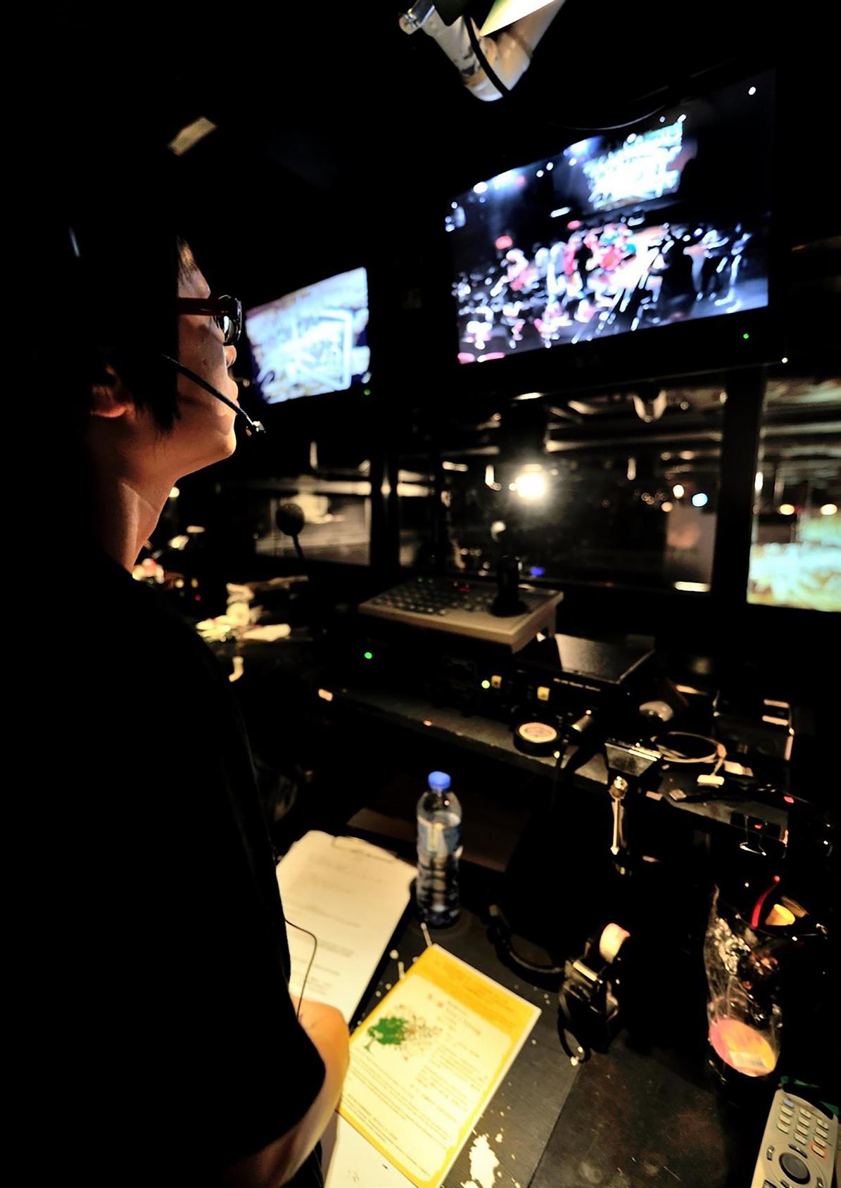 顏素茵在控制室為劇場演出提供現場口述影像服務