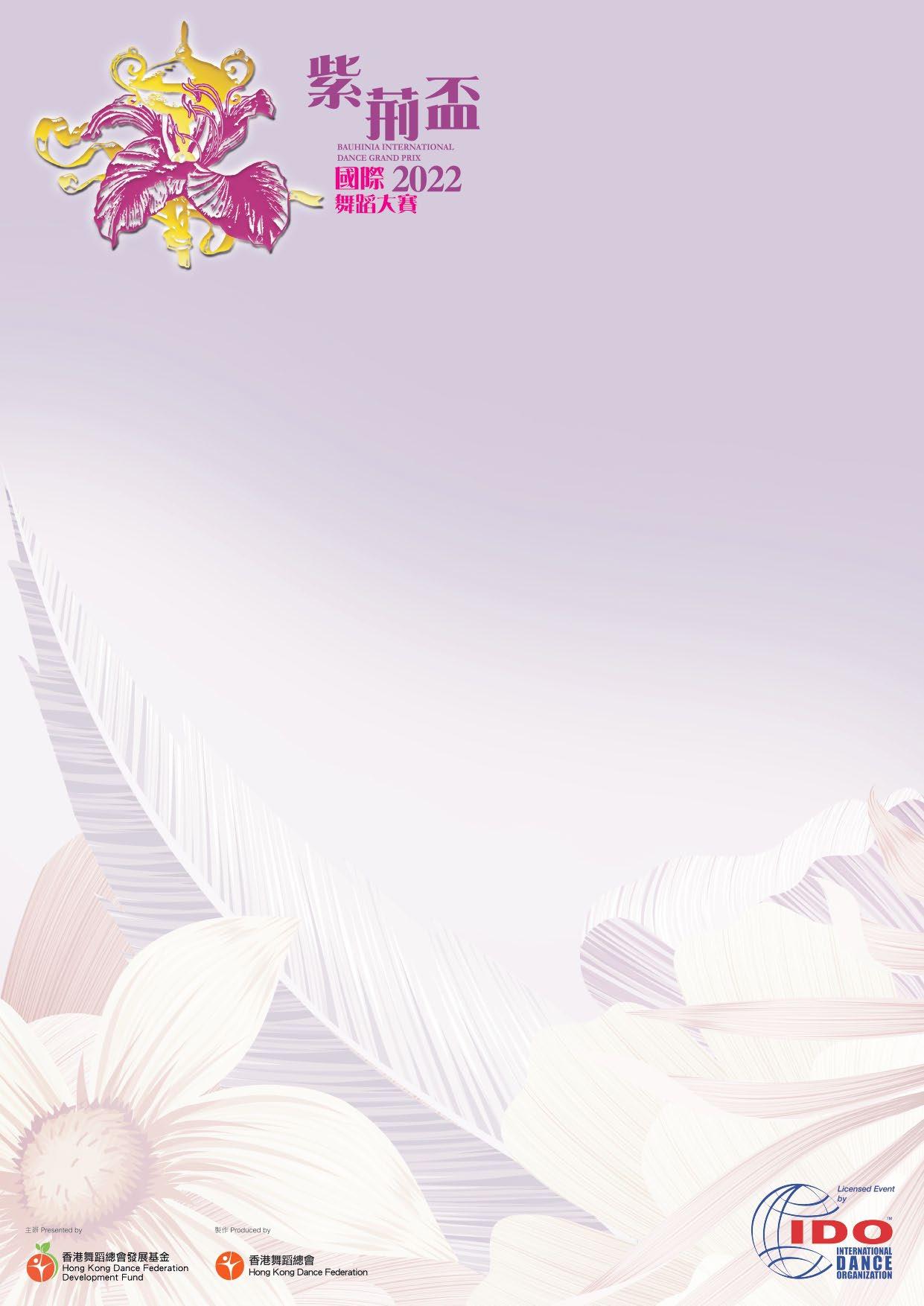 成績公佈 Result Announcement 《紫荊盃國際舞蹈大賽》特別獎項 Bauhinia International Dance Grand Prix 2022 Special Awards 獎項 Award 編號 No. 國家 Country 團體名稱/舞蹈員姓名 Name of Group/Dancer(s) 舞蹈名稱 Name of Dance 編舞者 Choreographer(s) 最佳編舞 Choreography BGO10 香港 Hong Kong 碧華舞蹈團 Alan and Becky Dance Group 領路人 Pioneer 劉碧琪 LAU Pik ki 最佳風格獎 Outstanding Style BGC05 香港 Hong Kong 春蕾舞臺藝術工作坊 Channy Stage Arts Workshop 白草河畔聽羌風 Maidens of Qiangzu Joy of Spring 李涵 LI Han 最佳表演獎 Outstanding Performance BGO02 加拿大 Canada International Dance Organization (IDO) Team Canada 祝福 Blessed 金巴克 KIM Barker