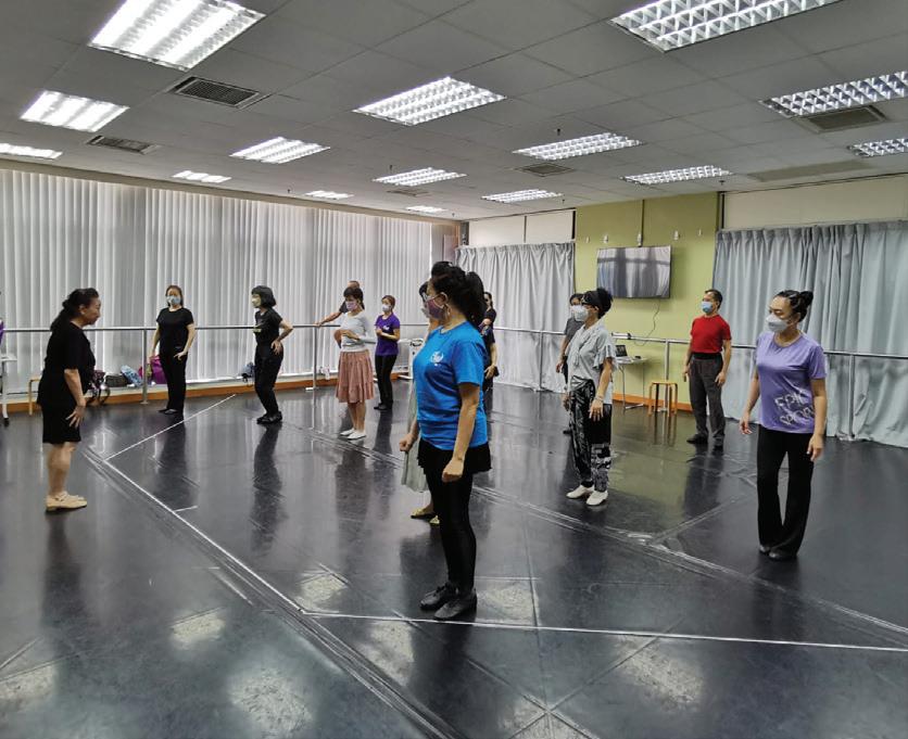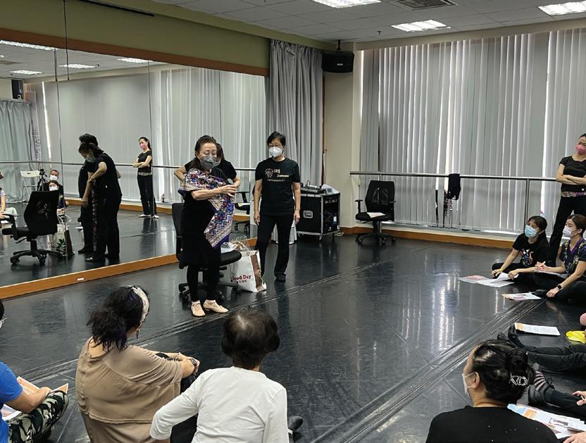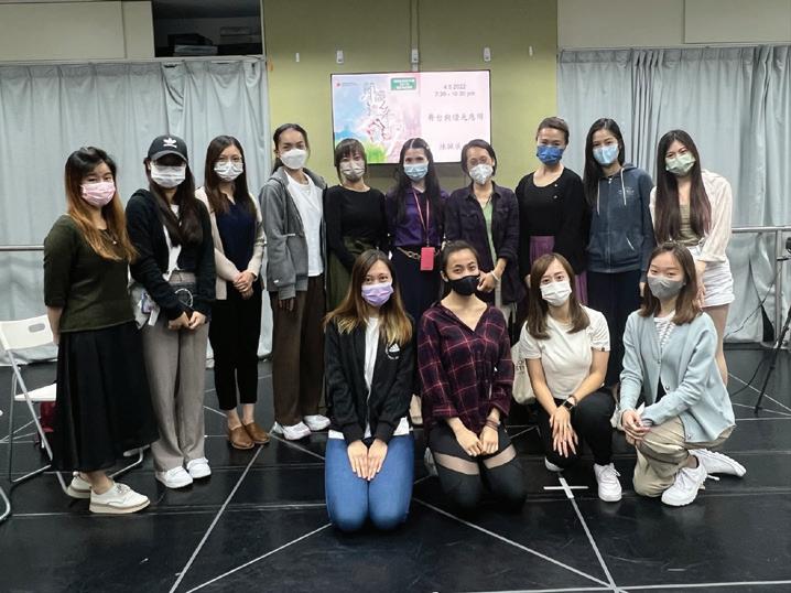 施,甚至因防疫要求很多練習場所關閉,大家要在悶熱的口罩下 排練等,實在提升了我們的統籌,策劃,執行和應變力。在劇場 綵排和演出三天裡,記憶最深刻的還是後台裡演員同的互相照 應,編舞之間的鼓勵,老師們的提點,和支援人員的適時幫助。 在久違舞台上,看見了滿座的觀眾席,謝幕時觀眾的手拍子確是 令人感動難忘。再次感謝舞蹈總會和各方的支援團隊的努力,在 疫情下讓演出順利進行。