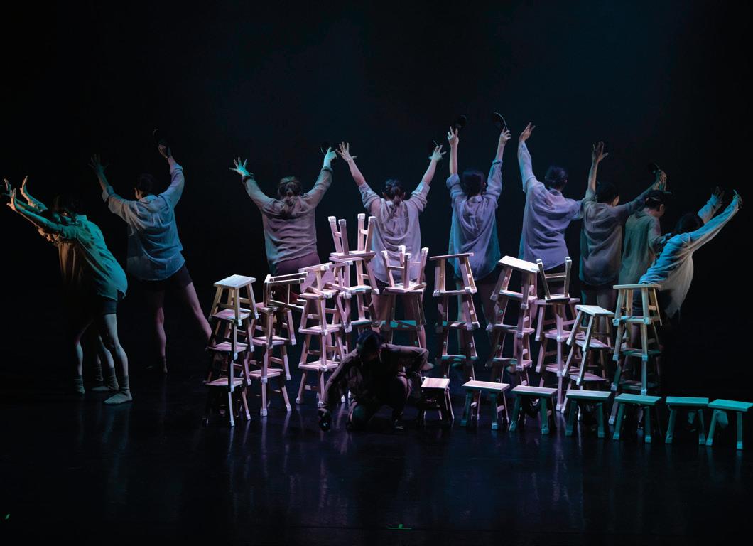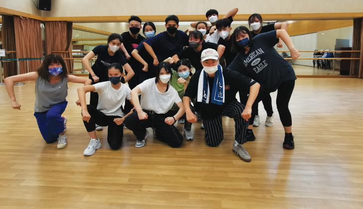 演出。雖然看似有三個月時間,但其實團體排練時間每週只有一個 多小時。對於剛被停頓了四個月的舞蹈世界來說,這情況不容許有 一分一秒怠慢,但身體和心理不能勉強,還是得一點一點慢慢讓我 自己和舞者進入狀態。幸運地,因為我們有固定的場地,有一班願 意溝通又聰明的舞者,有一個對創作抱有超級開放態度,給我100% 自由度和支持的指導老師劉佩雄老師。加上舞蹈總會後勤工作人員 的背後努力,還有各指導老師、顧問冼源老師和導演莊陳波老師由 衷的給我很多不同意見。最後舞蹈順利完成,大家享受了兩次公