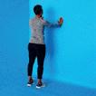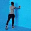 面對牆壁站立。將腳後跟疼痛的腳放在另一隻腳的後面。保持前 膝彎曲,後腿伸直,腳放在地上。將臀部向前拉向牆壁,直到您 感覺到小腿的小腿有拉伸感。