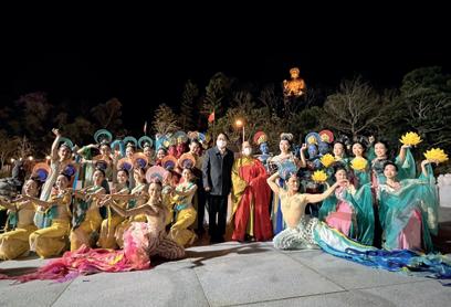 寶蓮禪寺的主持因曾經到劇場欣賞《緣起敦煌》演出而印象深 刻,特意邀請香港舞蹈總會派隊於活動中演出《緣起敦煌》舞段 《極樂世界》;而編舞陳磊老師更粉墨登場,親自扮演角式「天 鳥羽人」於節目中演出,其他演出團體包括星研舞集、星榆舞蹈 團及曉舞蹈等。