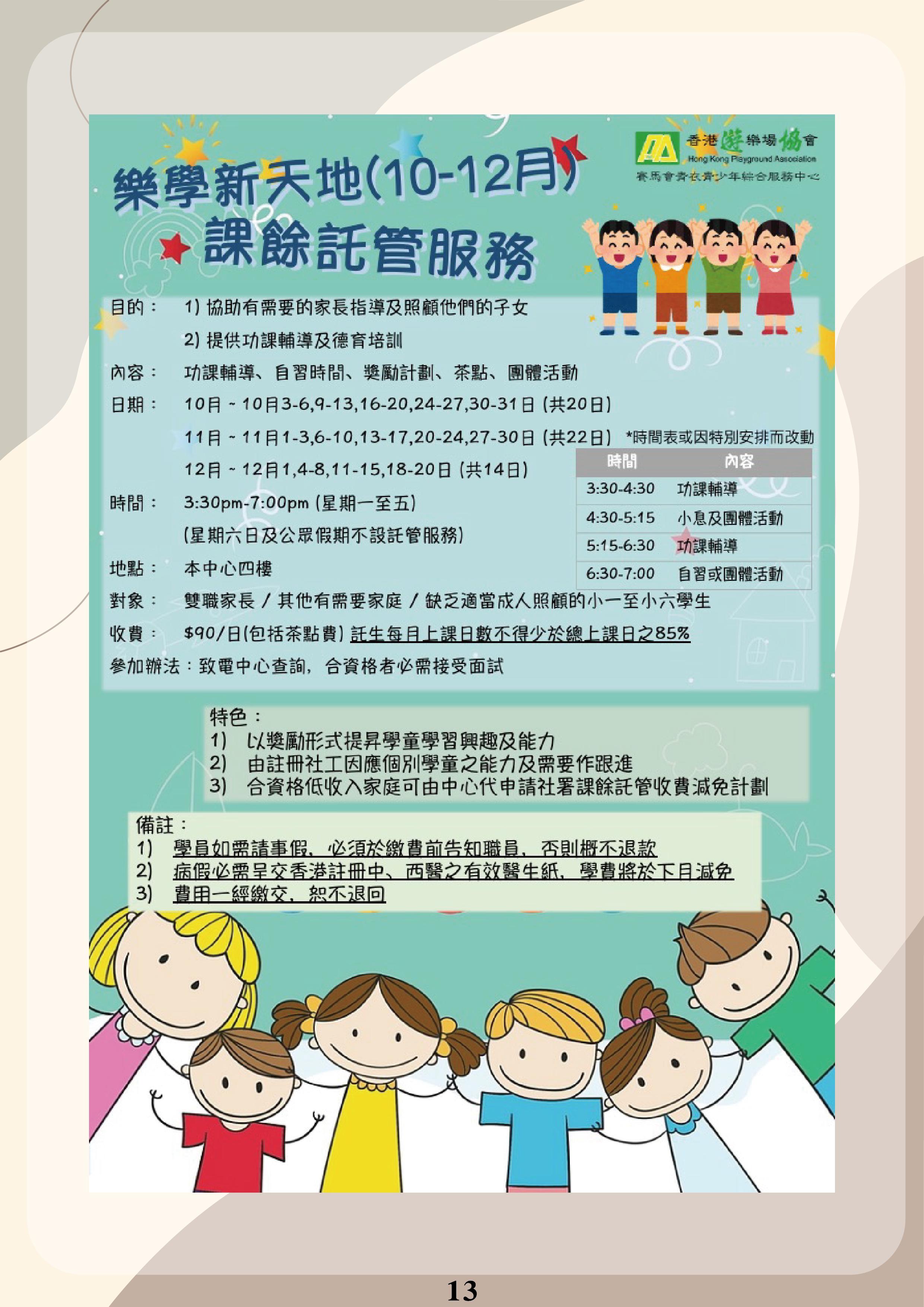 賽馬會青衣青少年綜合服務中心 2023年10-12月中心通訊