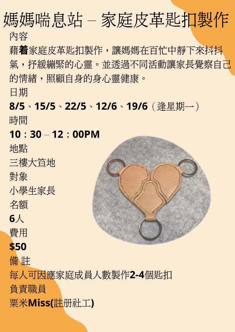 及美育為主,提供一系列興趣學習課程供區內居民報讀,同時中心社 工亦會舉辦德育及群育等主題小組活動,讓他們能夠得到完善的五育 學習機會︒