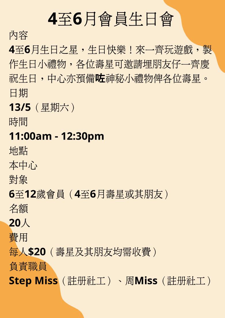 1. 可以以會員價參加中心活動、小組、功輔班及興趣課程等