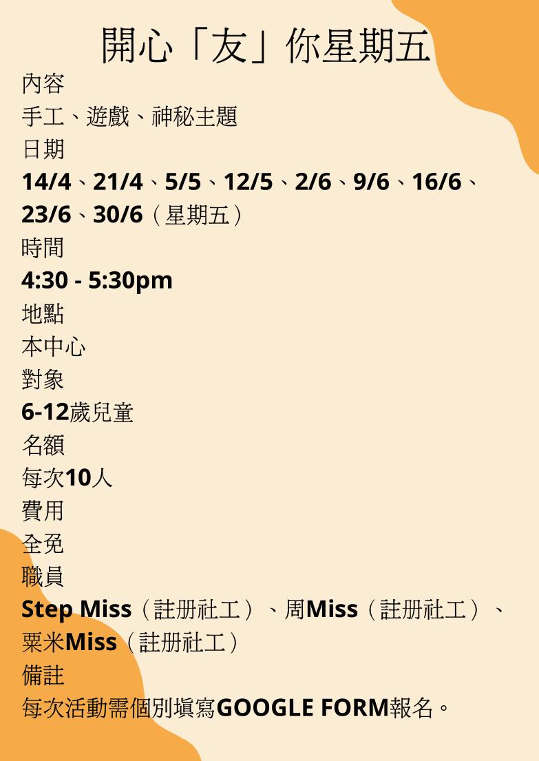 3. 因應各課堂/活動情況有別,本中心會視乎各情況而作不同安排。