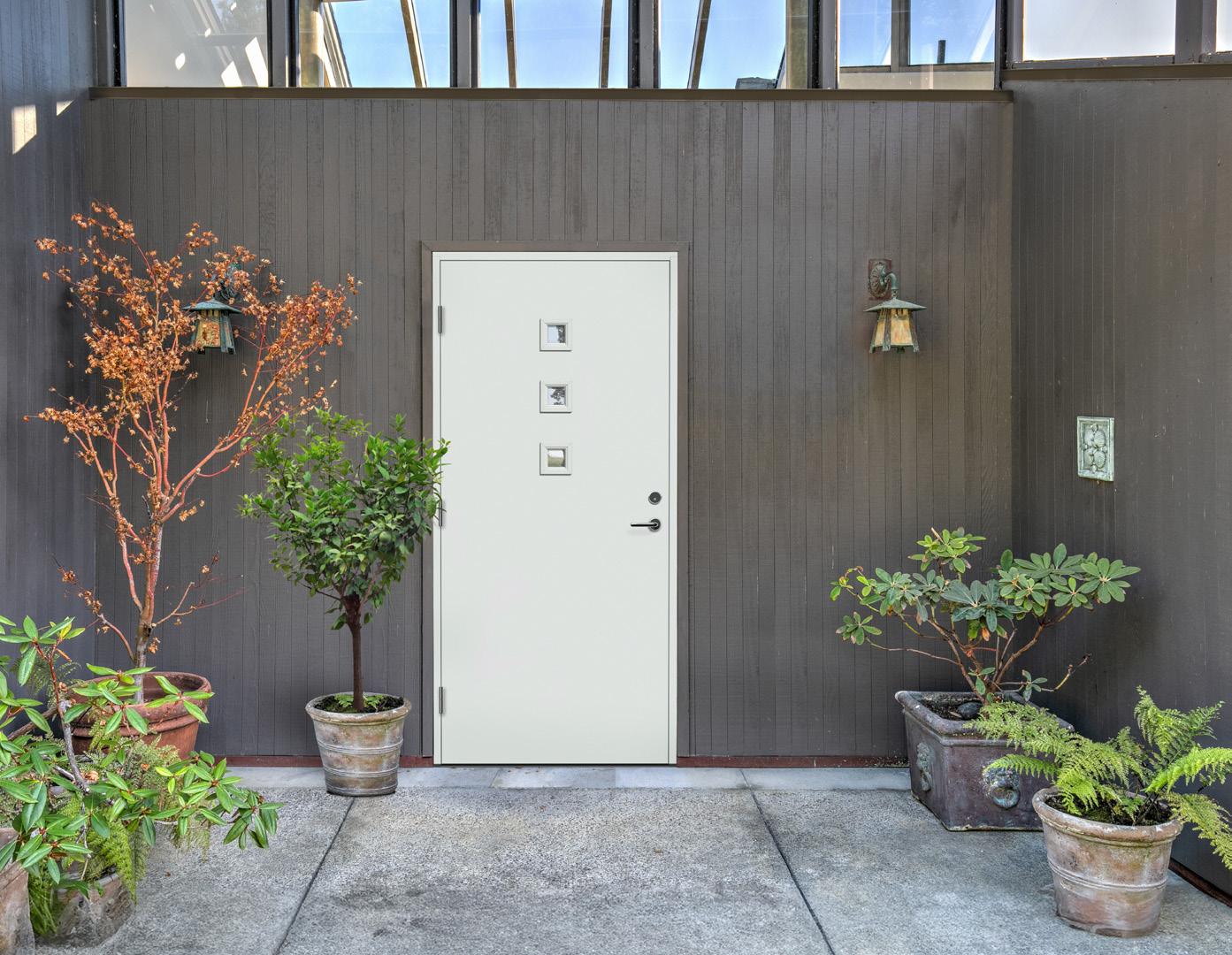 Dørsett. Klart 2-lags glass. NCS S 0502-Y U-verdi 0,9