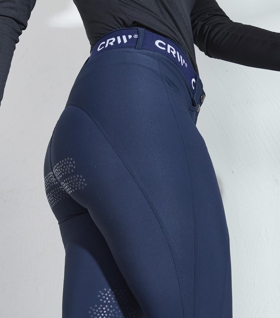 Vævede ridebukser med sadelsnit i strækbart funktionsmateriale. Formfast kvalitet, der er slidstærk, smudsafvisende og meget behagelig at have på. Knæbeskyttere med grip, hvor grebet også fortsætter på indersiden af lårene for optimalt fæste og støtte i sadlen, uden at bukserne er fuldt forstærkede. Elastik ved anklerne. Normal taljehøjde med dobbelt lukning for at holde ridebukserne sikkert på plads og give øget komfort. To forlommer og to lynlåslommer bagpå. Diskret mobillomme med lynlås på ydersiden af låret. Stilfuld detalje med rhinsten ved lommerne giver et elegant look.
